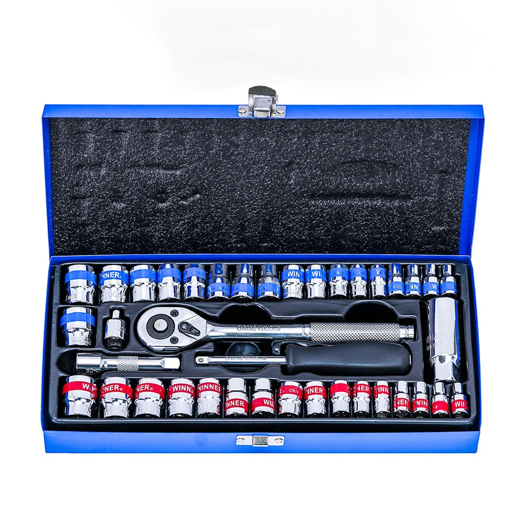 WEINER 40 pcs socket set, metric & SAE sizes, made of chrome vanadium steel, ideal for mechanics and workshop use.