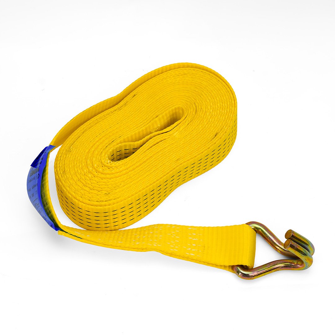 WEINER 2″ × 10m container tie-down strap with heavy-duty hooks and durable ratchet, ideal for securing heavy loads.