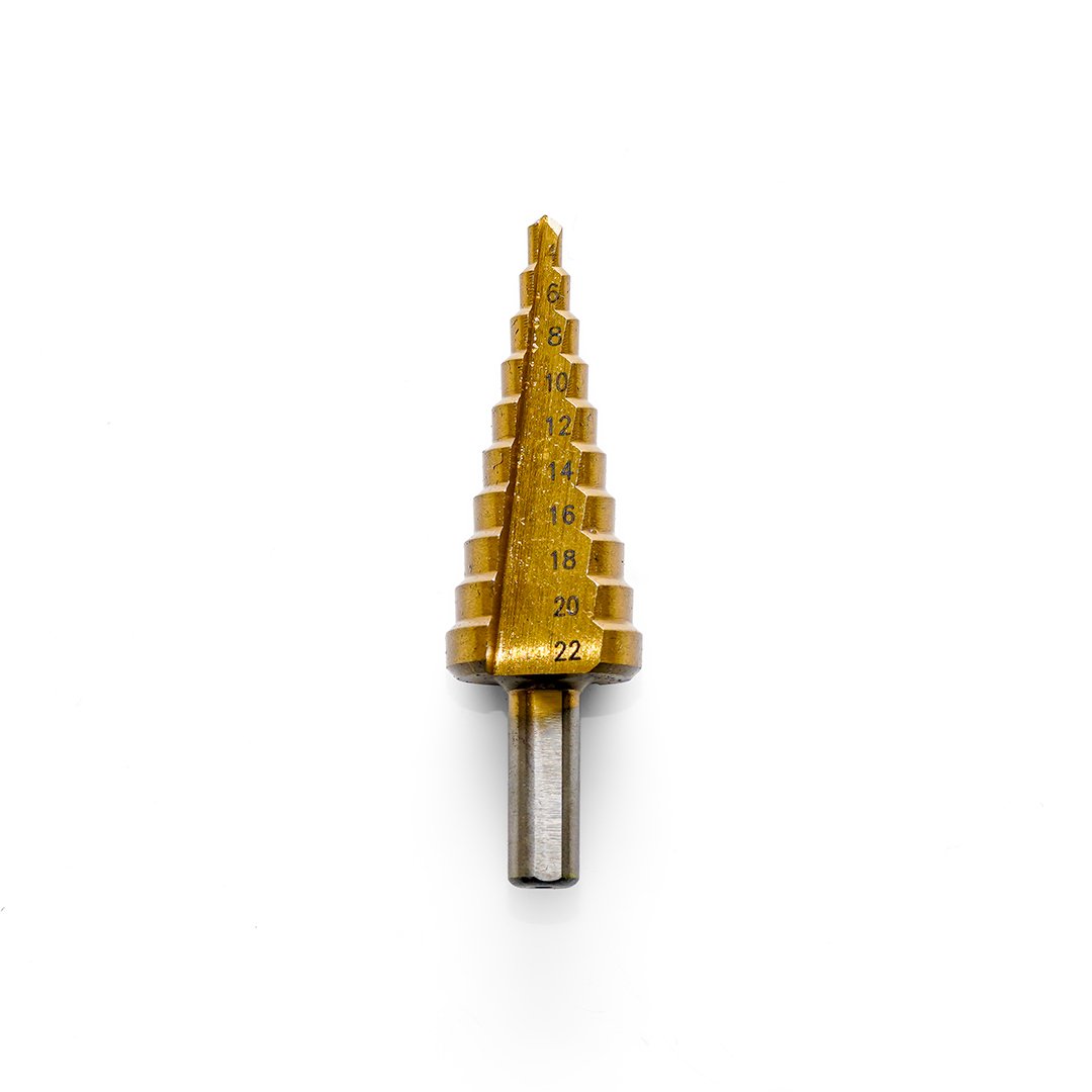 High-quality 4-22mm step drill bit for precise drilling in metal, plastic, and wood with smooth performance.