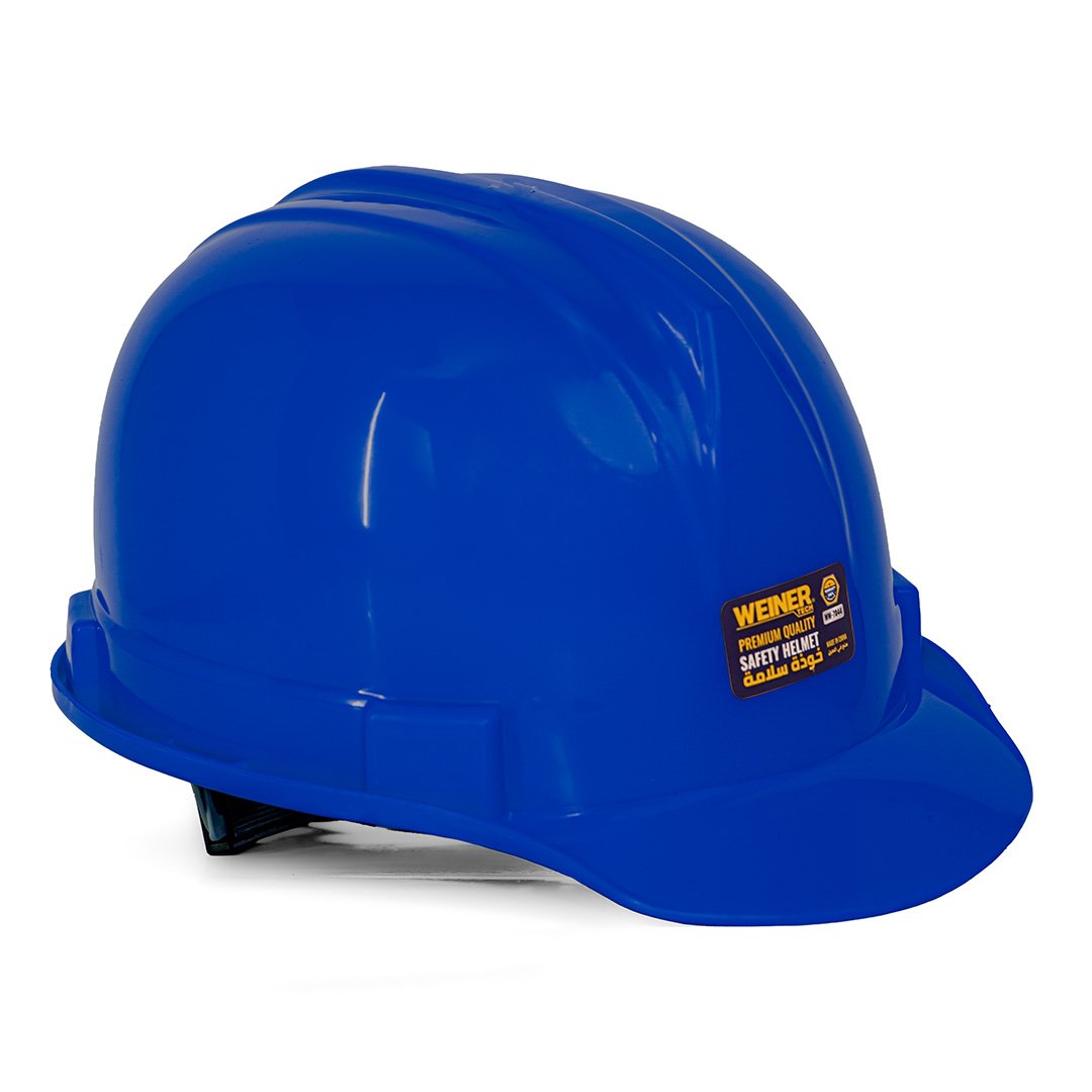 The WEINER tech blue safety helmet provides reliable head protection for industrial and