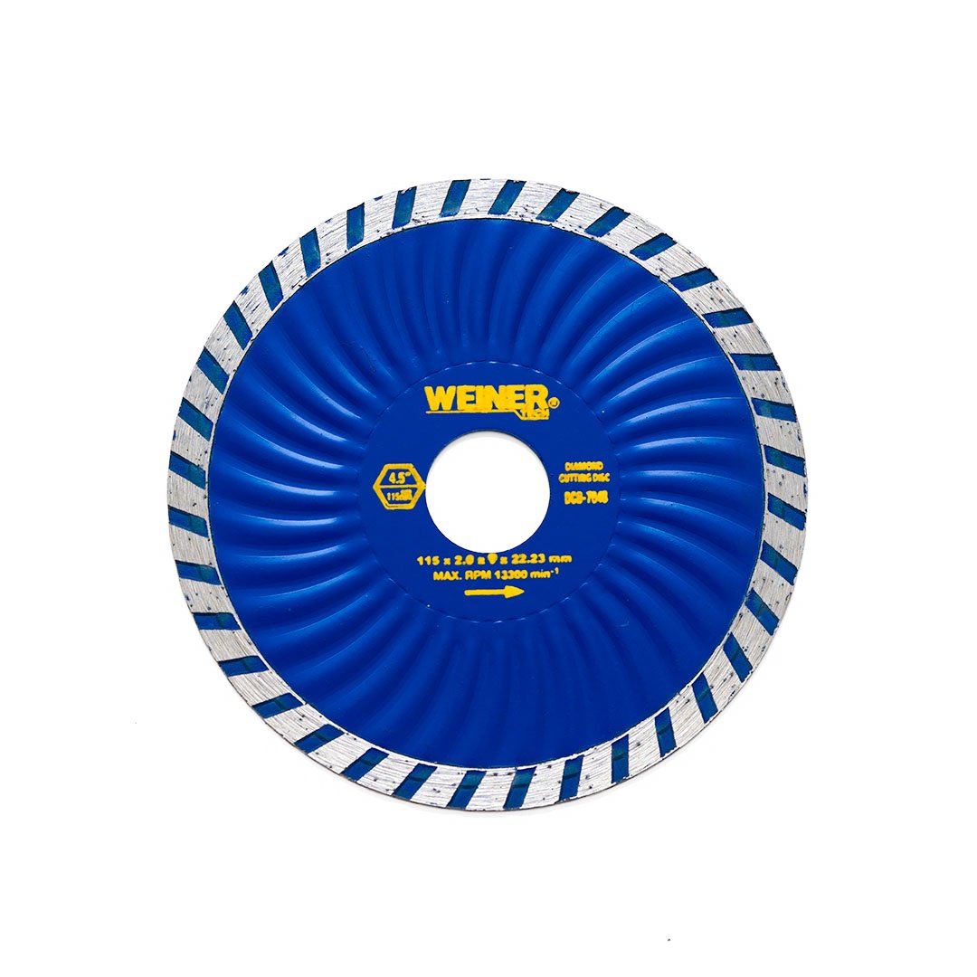 WEINER segmented granite cutting disc for high-speed and precise cutting of marble, granite, and ceramics. Available in 115 mm, 180 mm, and 230 mm sizes.