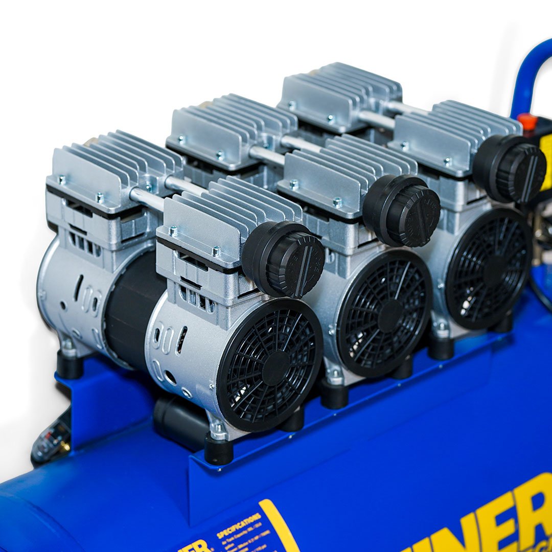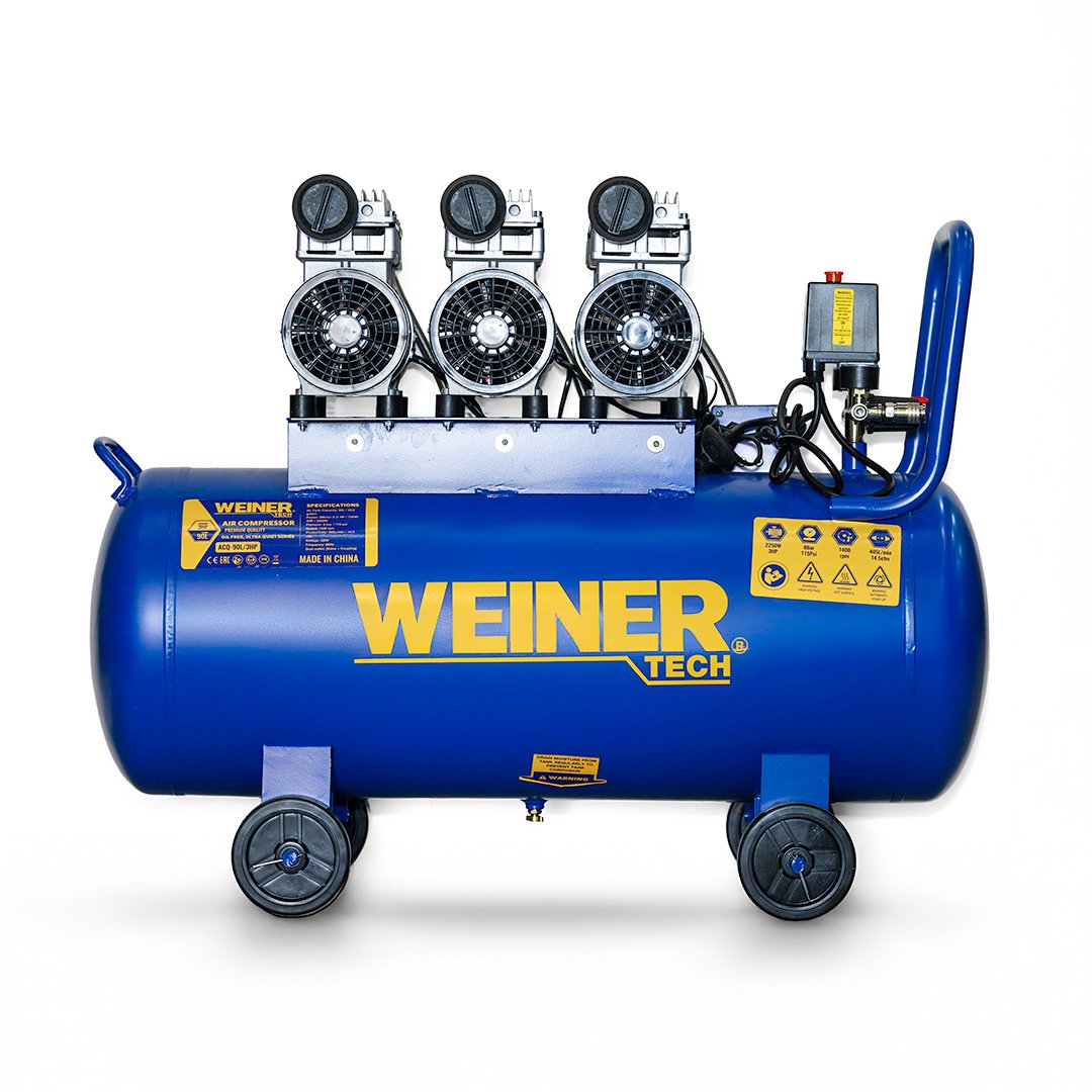 The WEINER tech Silent Air Compressor features a 50L tank and dual motors with a