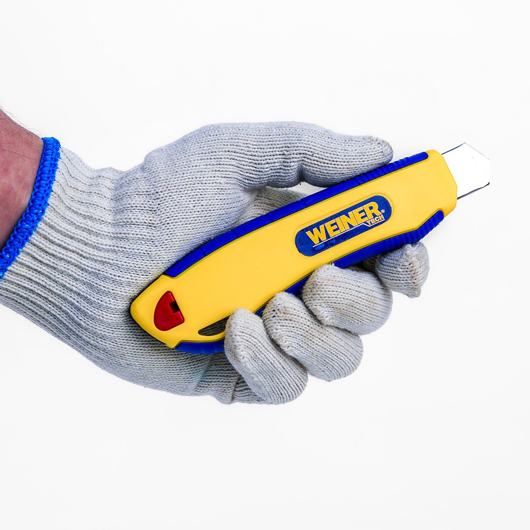 سكين كتر WEINER يد بﻼستيك مع قفل تويست، خفيف الوزن وآمن، مثالي لقص الكرتون والسجاد.