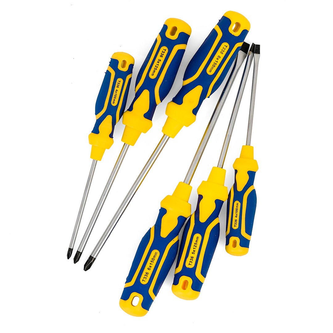 طقم مفك براغي احترافي ٦ قطع بيد ربر ومغناطيس، مصنوع من كروم متين.