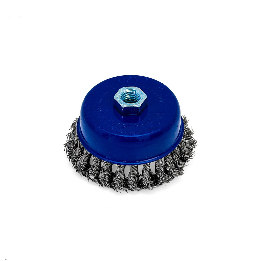 فرشة كوب مجدول عالية الجودة مصممة ﻷعمال التنظيف الثقيلة وإزالة الطﻼء والصدأ بشكل فعال.