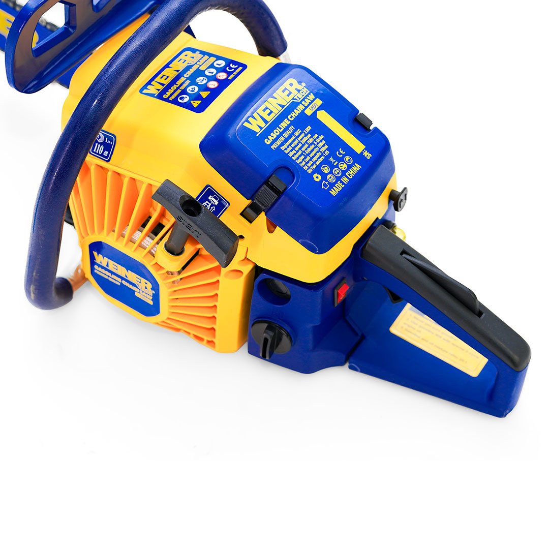 منشار حطب WEINER tech بنزين 16 إنش، محرك 58CC، قدرة 2.5KW، فلتر مزدوج، تشغيل سهل، تبريد هوائي.